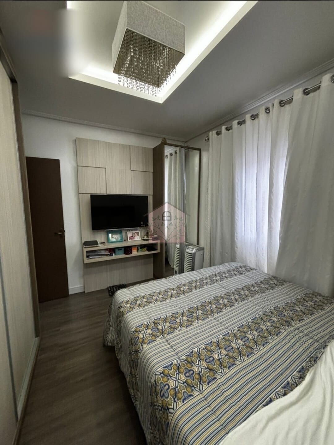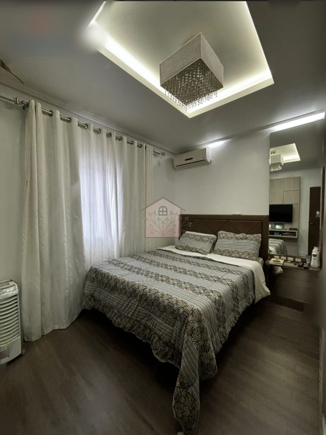 Acabamento nas paredes em massa corrida, rebaixo em gesso, vinílico.