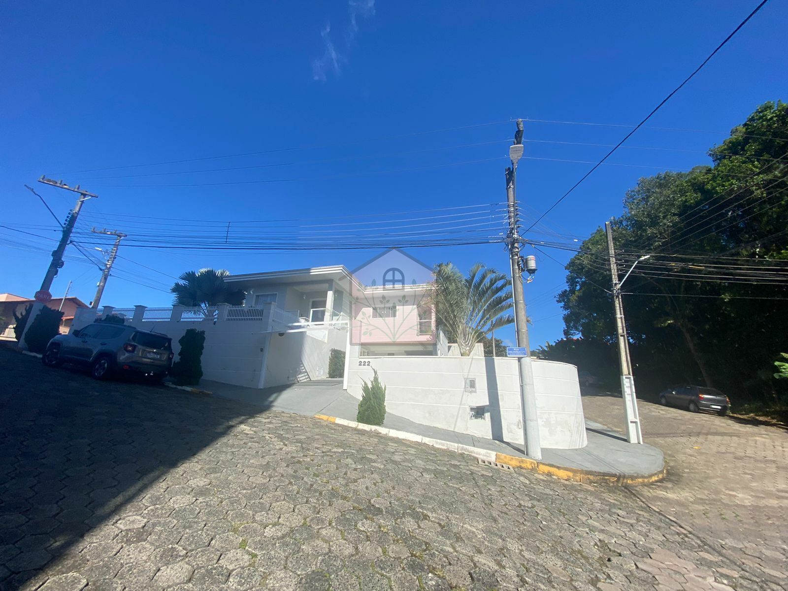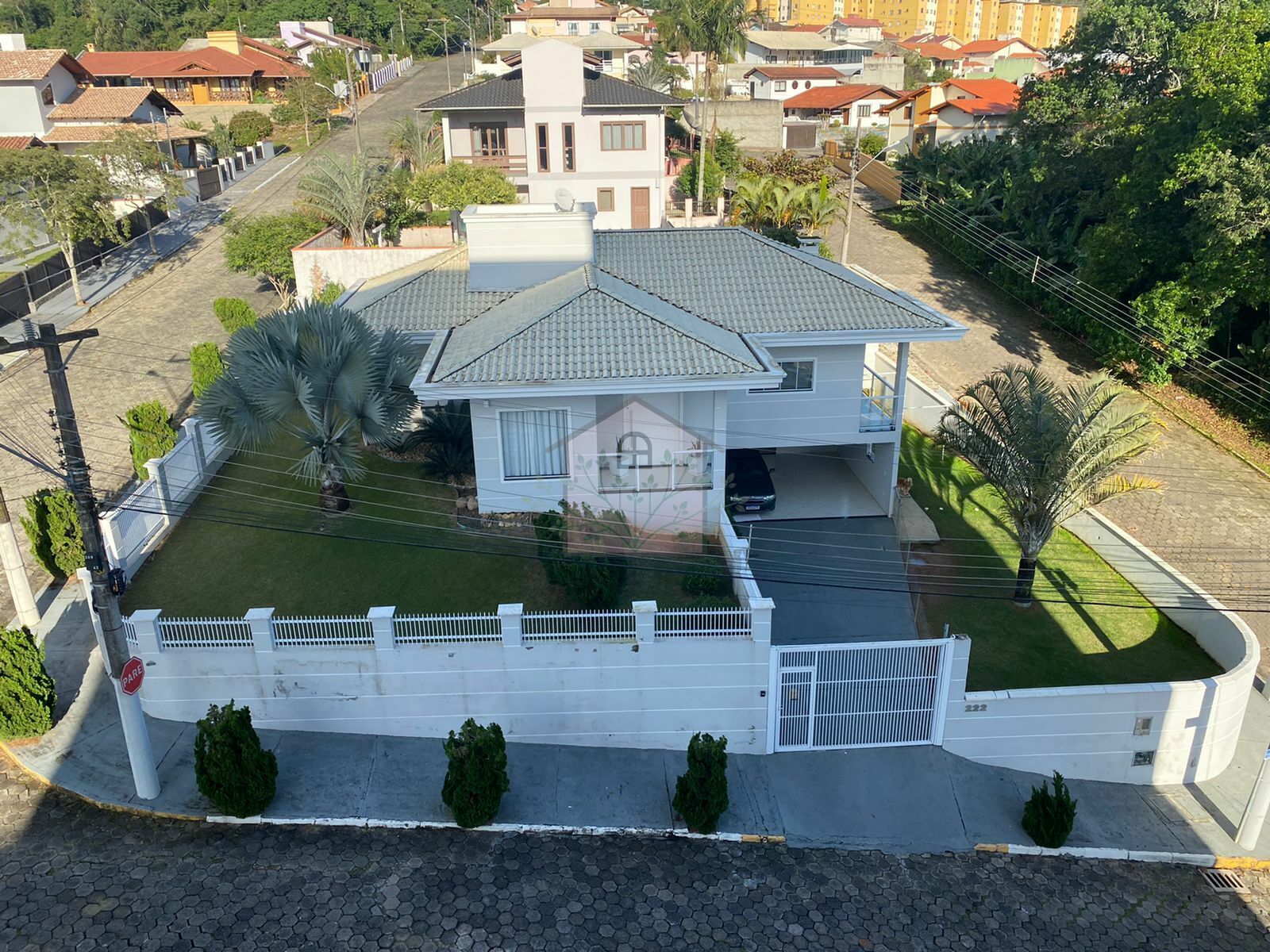Terreno de esquina com 504m² e 196m² de área construída.