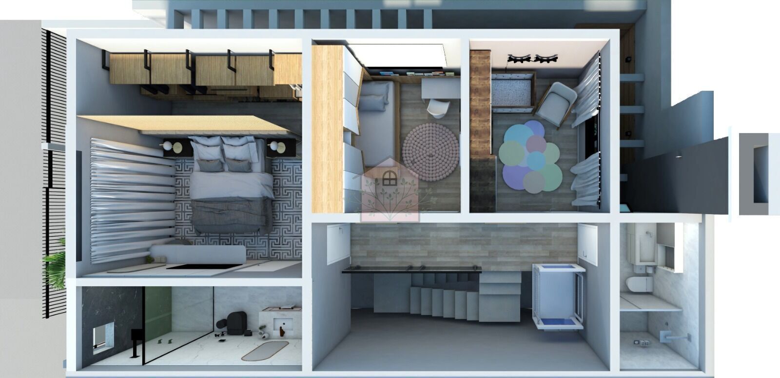 Acabamentos de alto padrão com massa corrida, abertura em alumínio, piso porcelanato e vinílico, rebaixo em gesso.